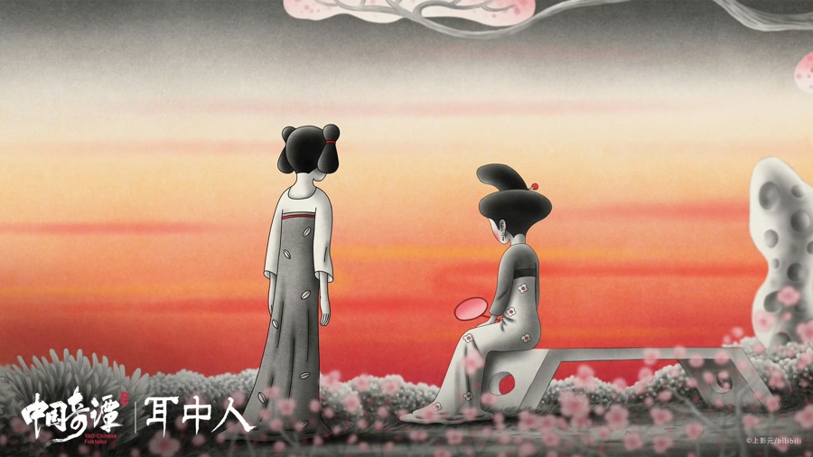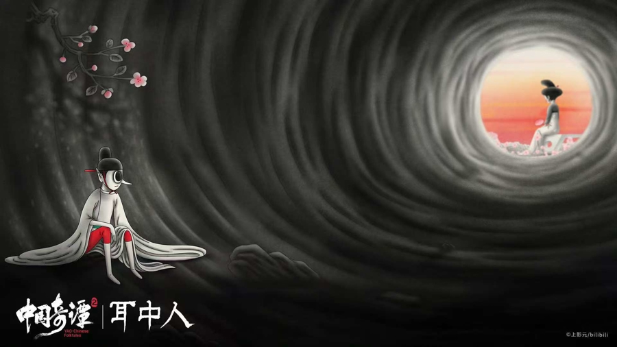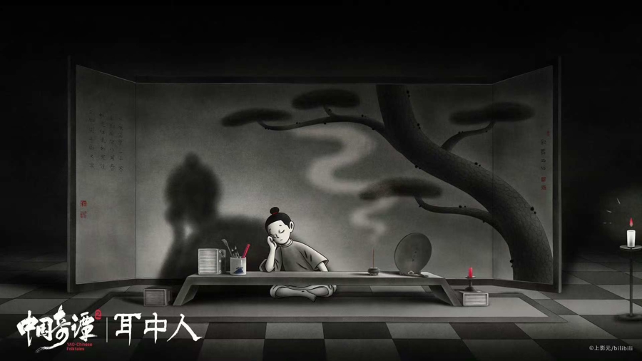 《耳中东谈主》奇趣诡谲。导演胡睿又一次向《聊斋志异》找寻灵感。《耳中东谈主》脱胎于卷一中的同名篇章,又跳出传统叙事框架,发展为沟通内心欲望的现代寓言。胡睿说,在征集创作素材时存眷到了“傀儡戏艺东谈主”这一传统形象,“旧时有一种艺东谈主住在戏台里,扮演与生计合一,试图用戏剧措置一切问题”。受之启发,动画中的主东谈主公谭秀才也被蓄意成这么“疯魔”的东谈主物,借助戏曲舞台与耳中东谈主周旋。